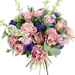 This carefully curated arrangement stands as a testament to the art of fine floral design. Showcasing a vibrant mix of roses, carnations, veronica, asters, lisianthus, and green accents, every bloom is chosen with meticulous care ensuring long-lasting freshness and beauty. The bouquet’s radiant colors and unique design make it a perfect gift.